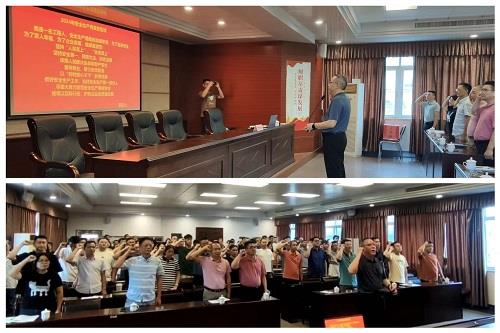 會議開始前,安全總監(jiān)李雪偉同志作了會前動員講話。之后,在總經(jīng)理席旭輝同志的領誓下,全體干部職工進行安全生產(chǎn)月活動宣誓。隨后,李雪偉同志組織學習宣貫習近平總書記關于安全生產(chǎn)重要論述內(nèi)容的同時,觀看了相關的安全警示教育片,并組織學習宣貫施工企業(yè)生產(chǎn)安全事故應急預案編制的要求。接著,安全科負責人胡其昌同志圖文并茂的宣講施工現(xiàn)場安全生產(chǎn)、文明施工標準化做法。