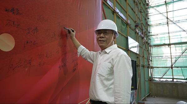 在封頂儀式上,惠州市惠陽區(qū)國資事務(wù)中心黨委書記、主任劉世海,惠州市惠陽區(qū)城市建設(shè)投資集團(tuán)黨委書記、董事長鄭劍偉,以及惠陽建筑工程有限公司總經(jīng)理席旭輝等領(lǐng)導(dǎo)嘉賓齊聚一堂,共同見證這一榮耀時刻。他們在簽到處簽到留念,留下了對項目的美好祝愿。