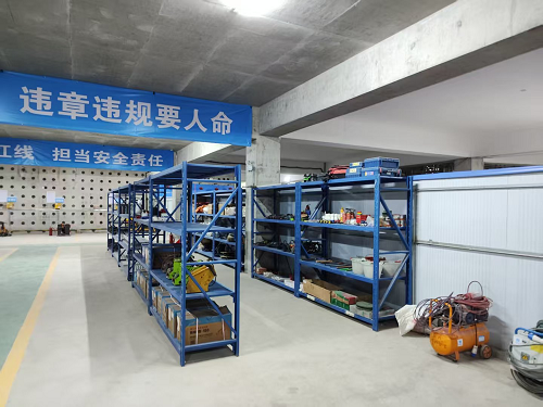 參觀了主要施工設(shè)備的現(xiàn)場運行與管理,以及施工機具、材料的展示區(qū),了解了常見施工用具的選型,材料的驗收、存儲和使用標(biāo)準(zhǔn)。觀摩了項目設(shè)置的施工機具管理工作,建立專門充電區(qū),劃分專門車位,建立集中充點電,規(guī)范化充電電箱、消防預(yù)警系統(tǒng),其安全、規(guī)范、高效的充電管理模式有效規(guī)避了消防風(fēng)險。參觀了機電倉庫,工程材料焊、切割作業(yè)作業(yè)點。